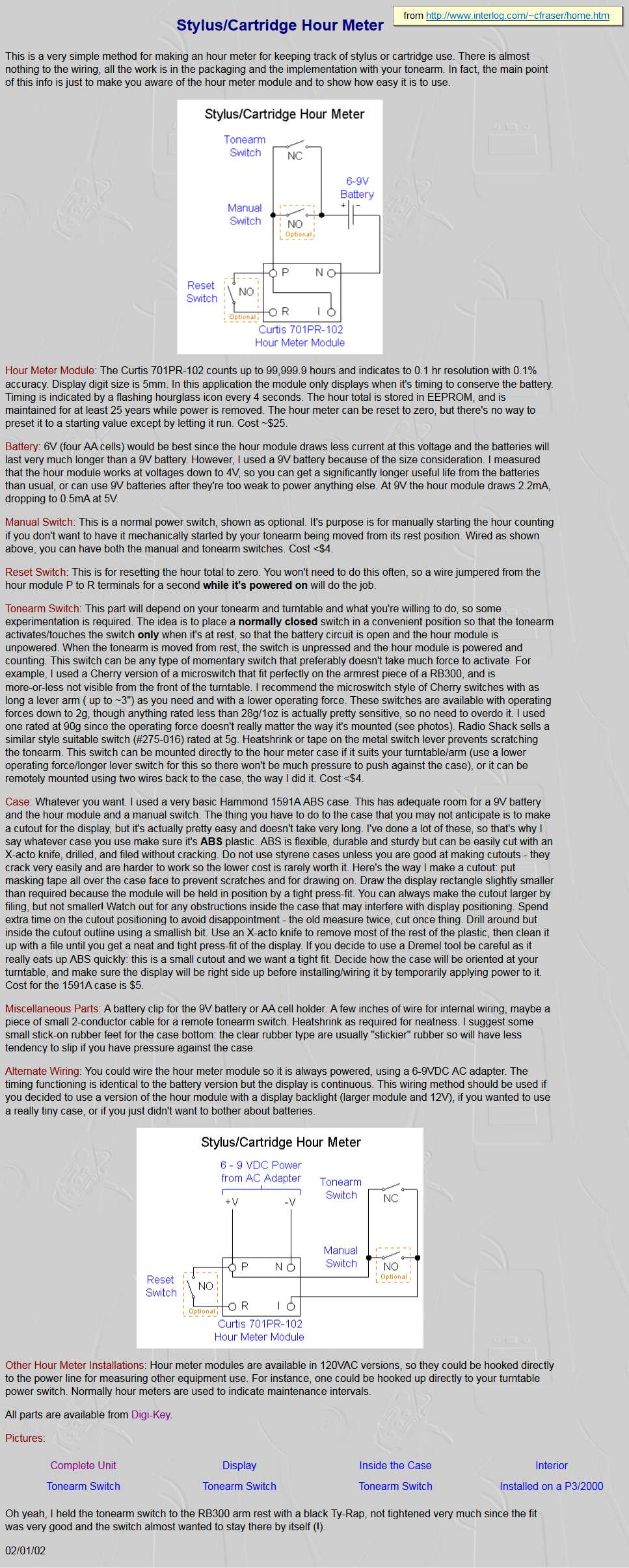 Honeywell LCD hourmeter module controlled by a micro-switch in the tonearm rest (see this screenshot of long gone webpage with the design)