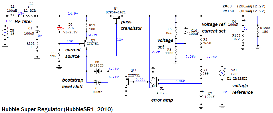 The circuit I implemented is based on the version in the 2000 Jung article with the opamp power bootstrapped off the regulated voltage.