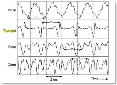 This picture shows similar results for trumpet and other instruments. (They’re all playing A4)