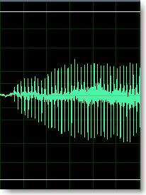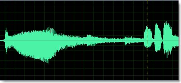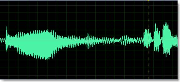 The next waveforms show a single long trombone note (down) followed by three trumpet notes at the yellow line (up).